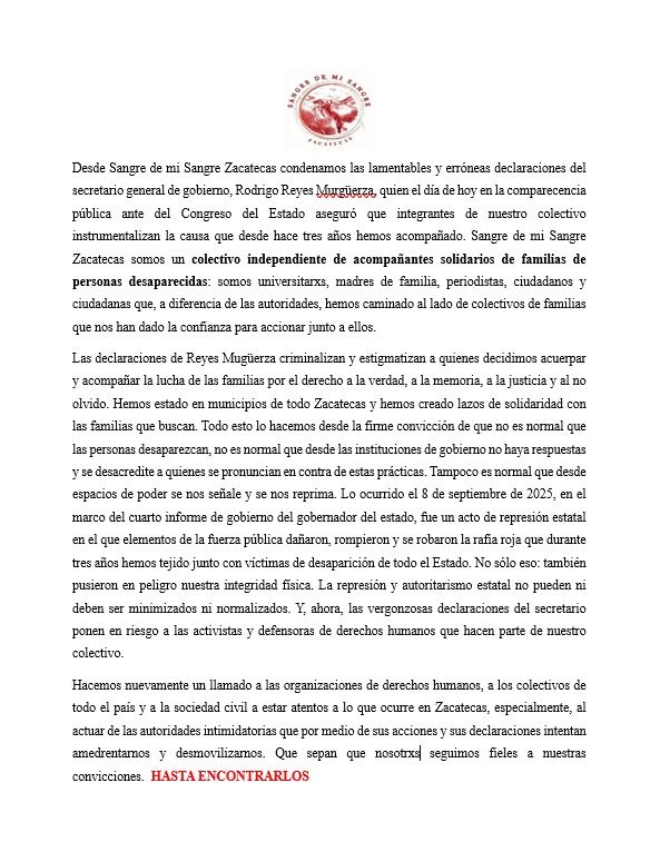 Casi en el clímax del decadente espectáculo, el buen Rodri soltó acusaciones con tanta soltura que dio espanto. Sin mencionar el nombre de la activista Cristela Trejo, la acusó de estar detrás de esa manifestación por motivos económicos. Hizo antes un preámbulo, pero no paró luego de hablar de cuestiones positivas como la implementación de los “chalecos naranjas”, el saldo blanco de la marcha del 8 de marzo de 2025 y proyectos para el respeto de las manifestaciones sociales. Siguió: “Pero sí quiero mencionar que, en particular, en el colectivo que se manifestó el día 8 de septiembre y en la manifestación del 8 de septiembre, no había madres buscadoras; había más que nada… o, a quien con quien (sic) se tuvo el diálogo, fue con una persona académica de la Universidad Autónoma de Zacatecas. Y también hay que decir con mucha claridad, que hay, o parece haber, una intencionalidad de utilizar esta causa legítima de manera errónea por alguien de la Universidad Autónoma de Zacatecas, de un departamento académico de la universidad que estaba acostumbrado a recibir dinero del gobierno y que, al no recibirlo, está buscando la forma de ejercer presión, no solo en este ámbito sino con otro tipo de expresiones…” Era lógico que la colectiva de búsqueda respondería para arropar a la activista que tiene años arropando a las madres buscadoras. Solo quedó una duda ¿El comentario fue para generar polémica y para evadir la respuesta de quién dio la orden de la represión el 8M de 2024 y el 8S de 2025? Usted juzgue.
