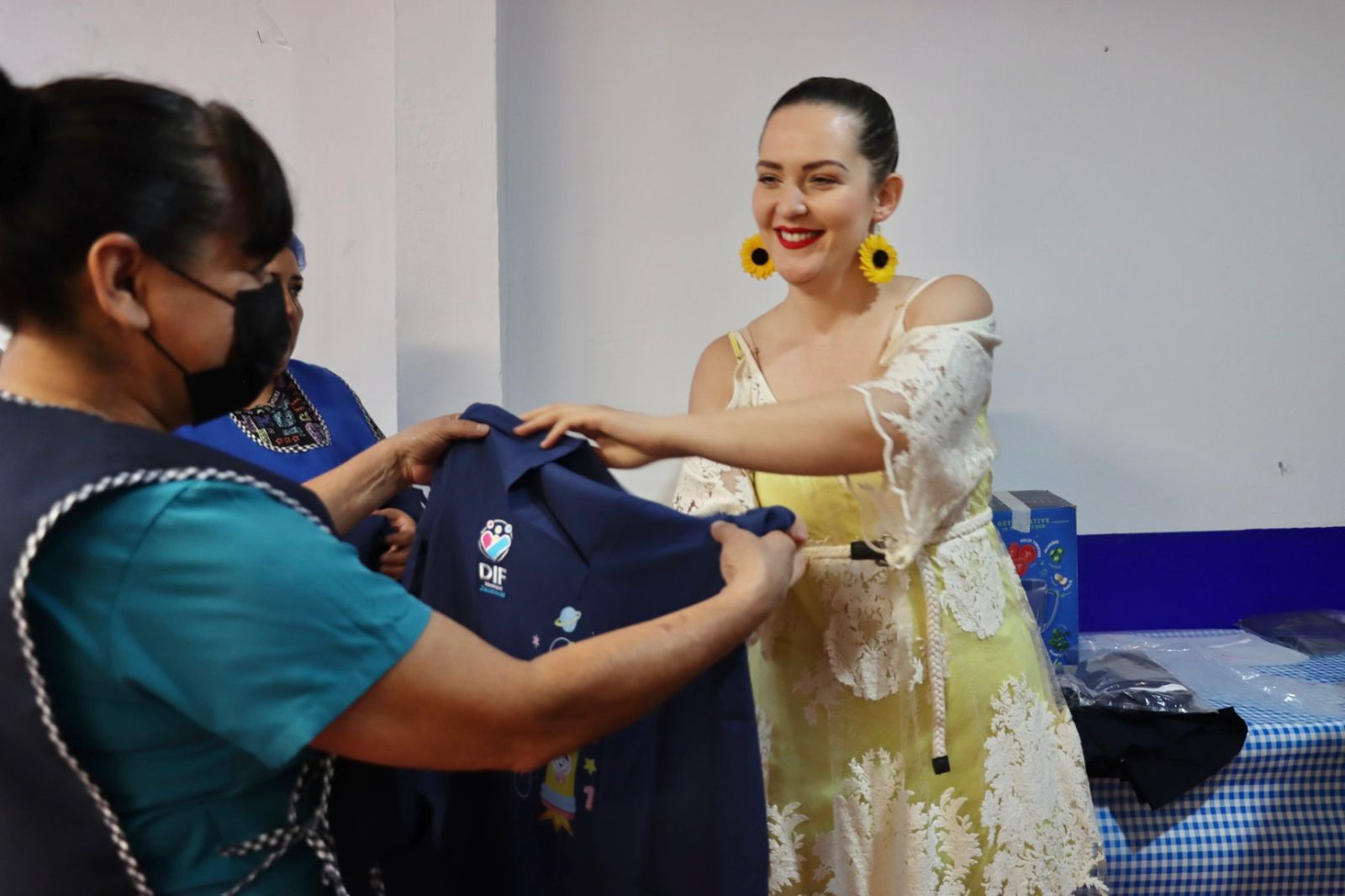 Uno de los puntos clave de la entrega fue la dotación de uniformes para las maestras, una acción que reconoce su labor diaria y refuerza la identidad institucional. Además, se equipó la cocina del Cendi con una serie de electrodomésticos y herramientas fundamentales para la preparación de los alimentos de los niños.