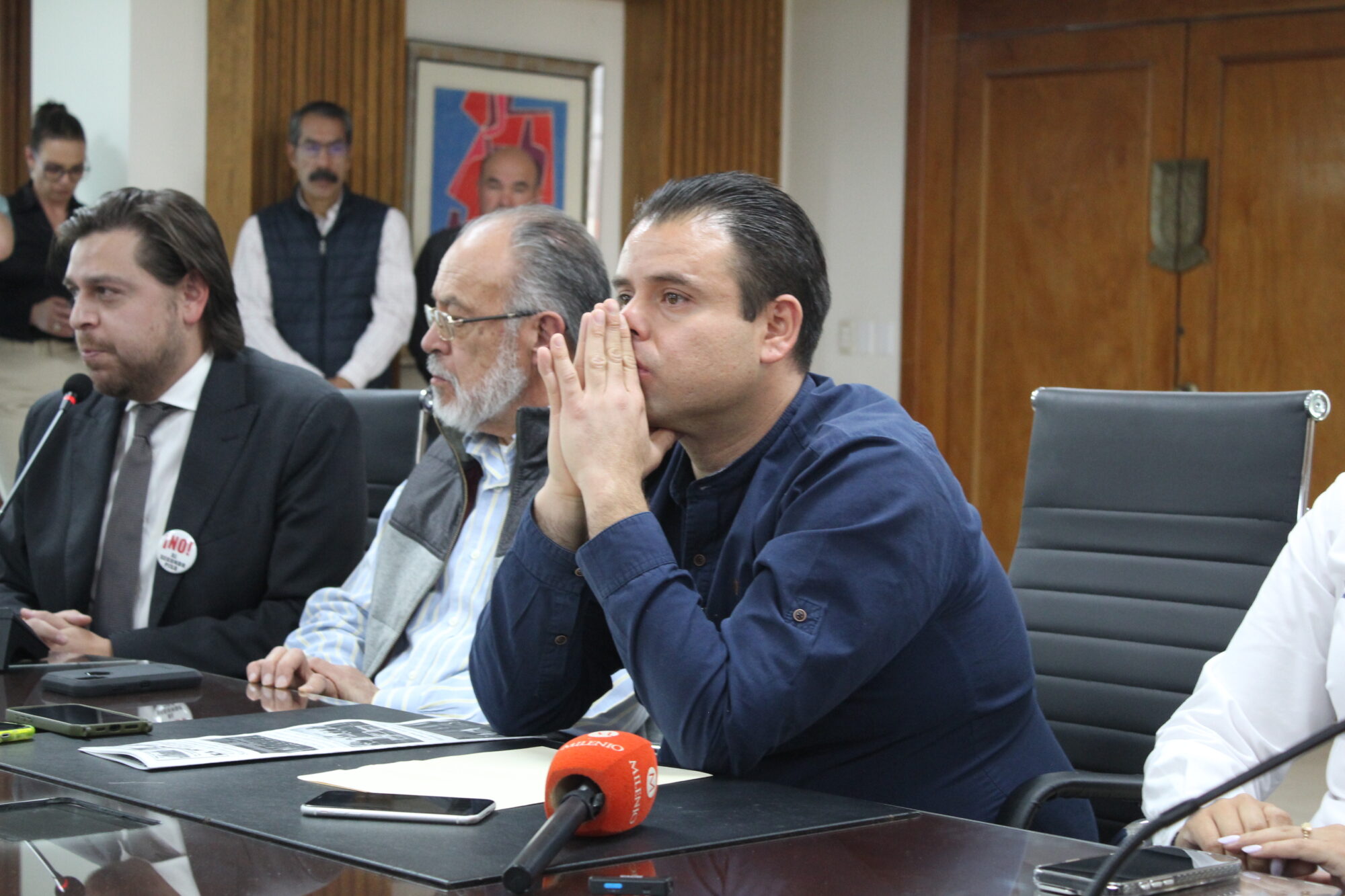 De izquierda a derecha: Darío del Real, Francisco Valerio y Miguel Varela, durante el anuncio de otra suspensión definitiva del Segundo Piso.