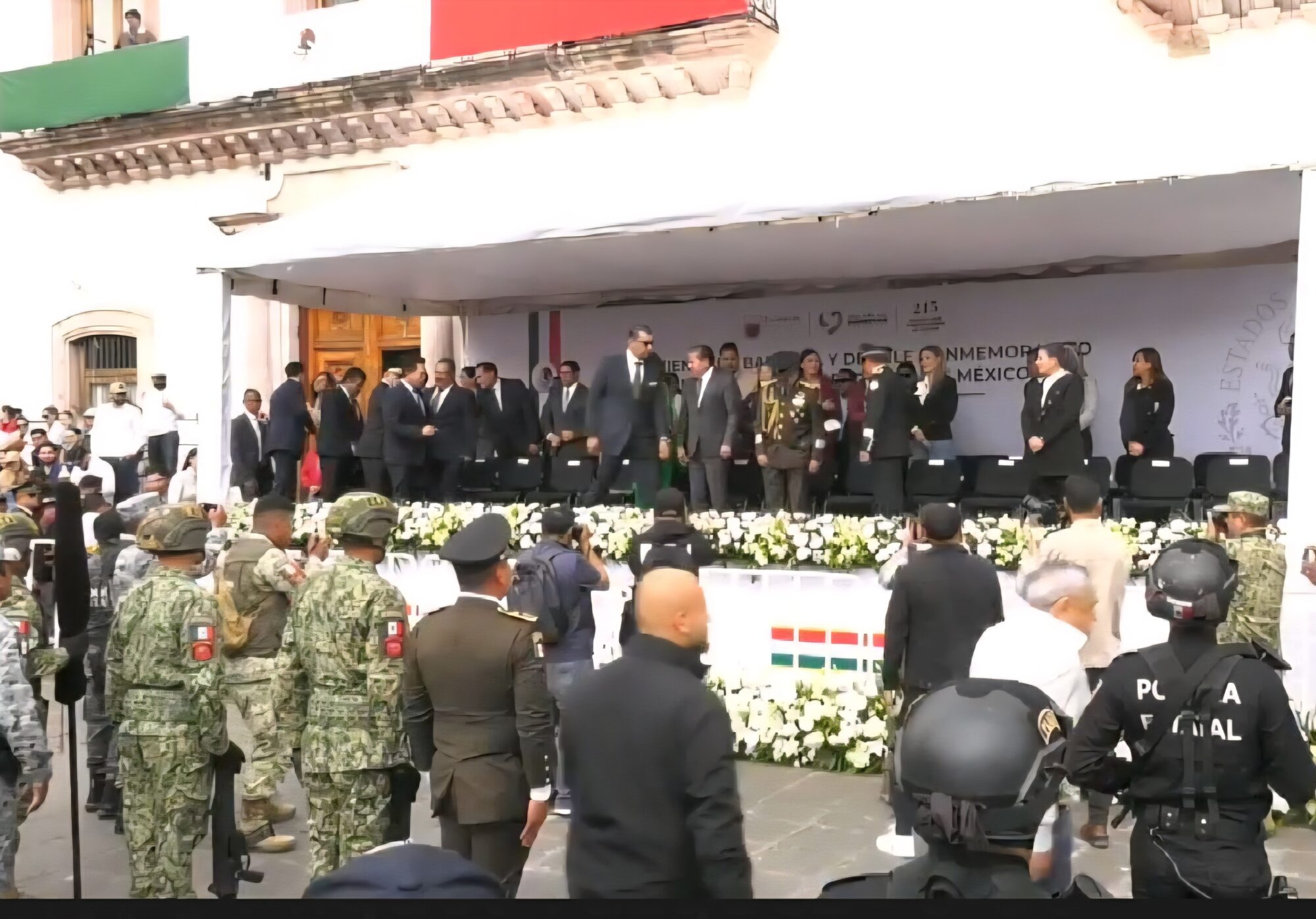 Un operativo de policías estatales y tránsitos del Estado circundó el Centro Histórico para proteger el templete de autoridades. La ciudad fue secuestrada por la élite política que encabeza un David Monreal cada vez más diminuto. El objetivo era proteger al “mandatario”, al que sus lacayos insisten en meter en una burbuja.